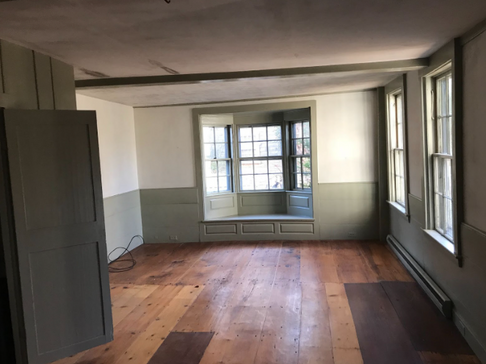 The original floorboards of the Captains House had been patched with newer boards. We later replaced those with wide pine boards from the same period.